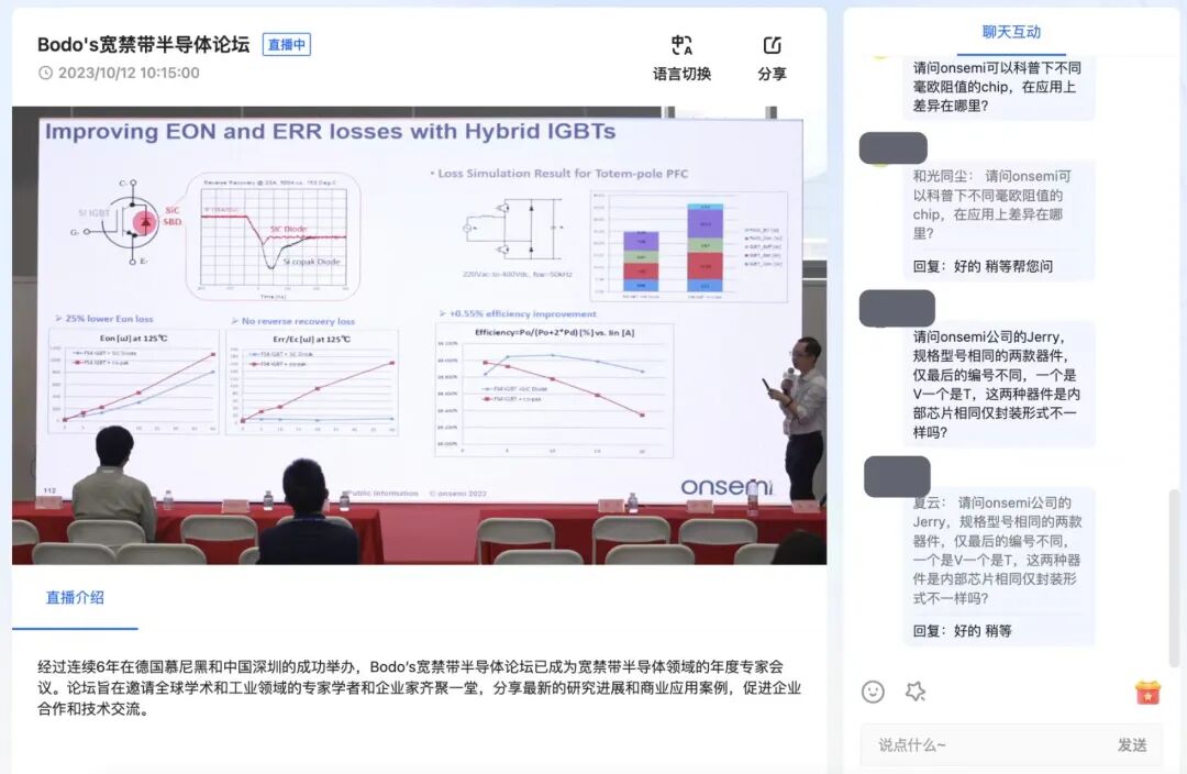 此次论坛不仅在现下进行,更是开展了线上直播的方式,吸引了大量在线观众的关注和参与。观众们热情高涨,积极地与嘉宾互动,针对碳化硅与氮化镓这两个热门主题进行了深入的交流与探讨。线上与线下的结合为参与者带来了极为丰富的知识体验以及参会的便利性。