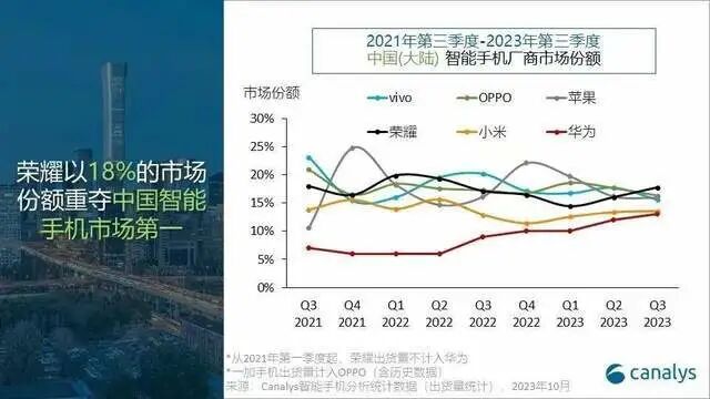近日,知名分析机构Canalys发布了2023年3季度,中国手机市场销量及份额数据。