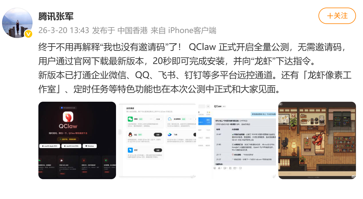 开箱即用!腾讯QClaw开启全量公测