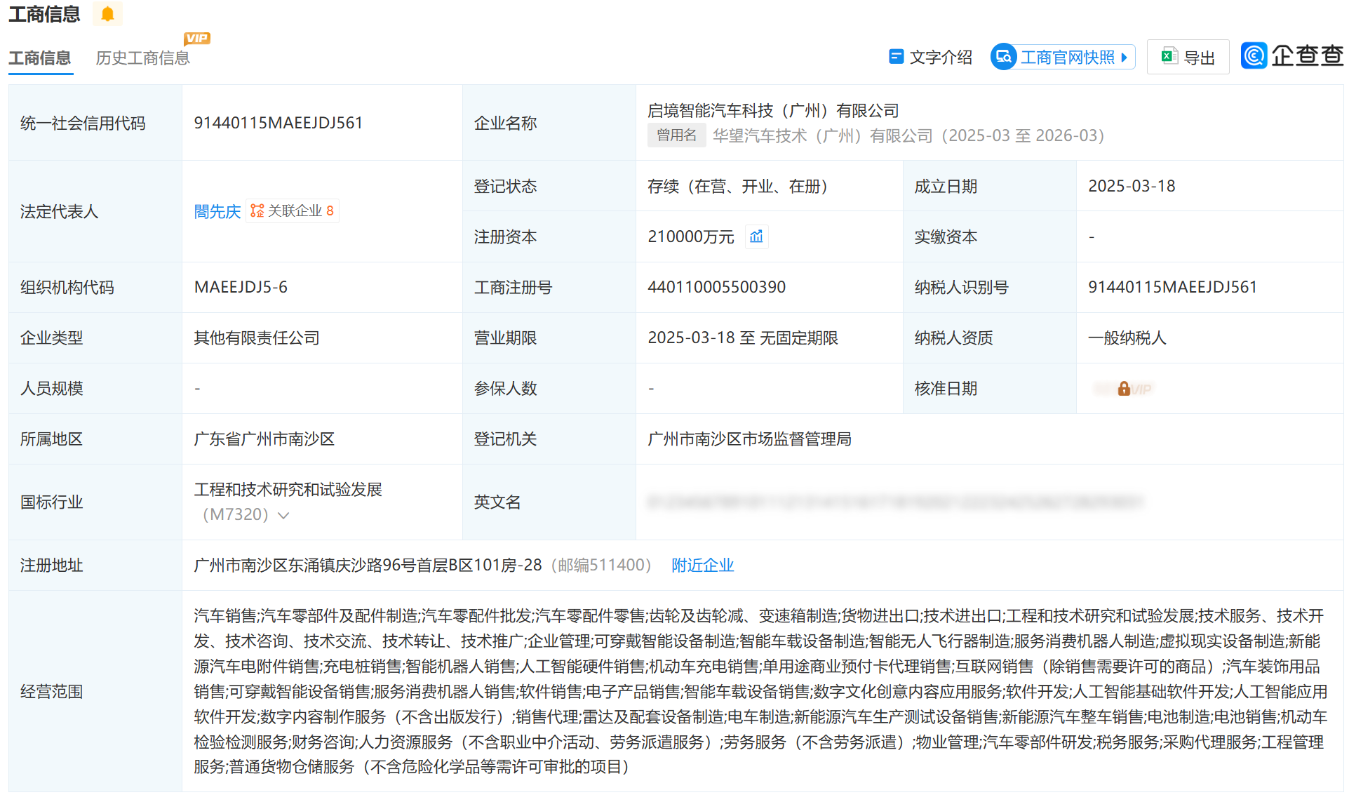 此次更名后的启境智能汽车科技,经营范围覆盖新能源汽车整车及零部件研发制造、智能车载设备生产、人工智能软硬件开发等全产业链领域,依托广汽成熟的智造体系与华为乾崑全栈智能技术,构建“技术+智造”双核发展范式。启境完成企业与品牌名称统一,也让华为“境”系列深度共创模式落地更趋完善。