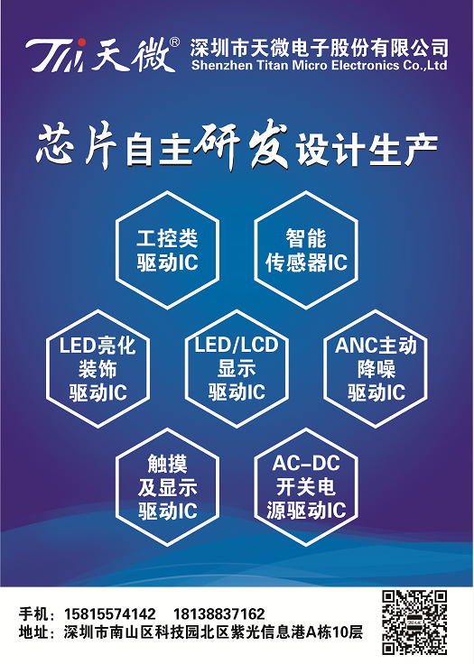 深圳市天微电子股份有限公司成立于2003年,总部位于深圳市南山区高新技术产业园北区紫光信息港,天微是以集成电路(IC)设计、集成电路封装、半导体封装测试设备制造、产业化营销为特色的综合性企业。天微围绕客户的需求持续创新,有超过3,000家客户在使用天微的集成电路产品,包括数据转换器、LED/LCD显示驱动、射频(RF) IC、电源管理产品、其他类型传感器以及信号处理产品,客户遍布于国内,欧洲,东南亚等多个国家地区。 中国半导体产业是天微核心关注的战略市场,我们通过为客户提供的从集成电路产品到开发方案、特种封装及信号处理技术是我们帮助客户产品实现差异化的关键因素,这些产品广泛应用于诸如工业自动化、智能家居、物联网以及消费电子等市场。 依托于研发及综合技术能力,天微坚持以客户为中心的战略,理解客户需求,为客户提供全面、高效的集成方案和服务,公司秉承“严谨创芯、无微不至”的宗旨,打造民族集成电路的产业链,以自主研发的新技术和高品质产品回馈社会,推动我国民族集成电路产业的发展,把天微建设成为世界一流的集成电路企业,并与客户共同发展,开拓市场,实现共赢。 (以上资料来源于企业官网)