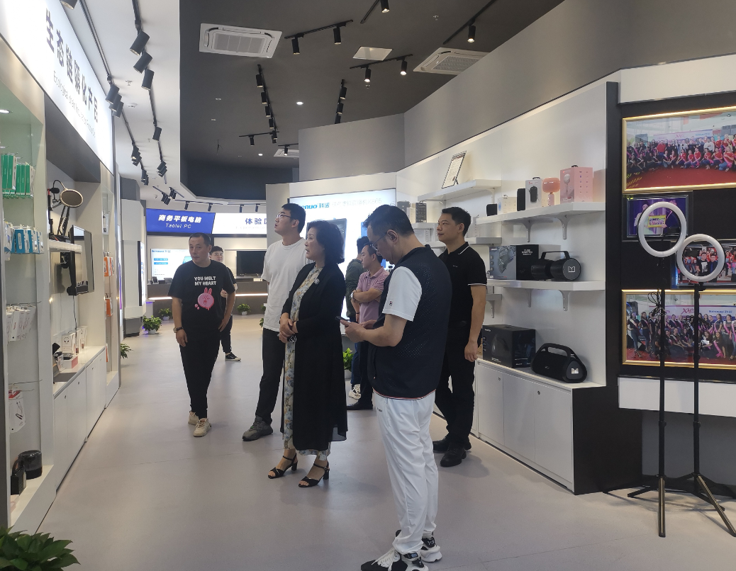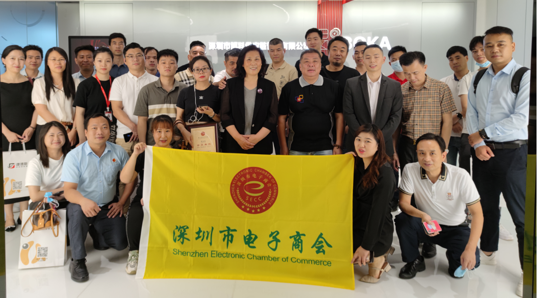 5月11日下午,理事单位深圳市开心电子有限公司董事长何武陪同四川盐亭县经济合作局党组成员、副局长敬毅一行到访商会。