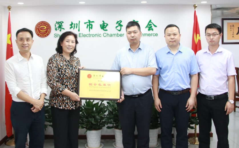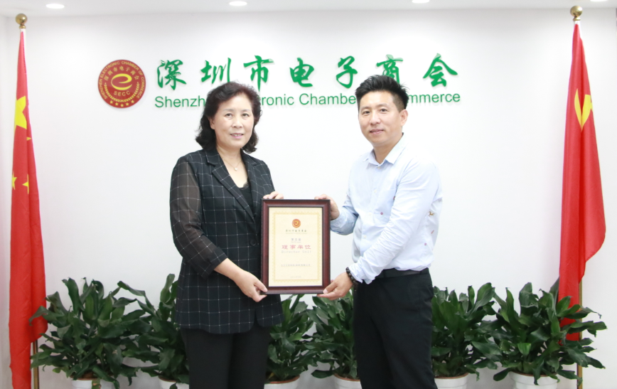 5月25日上午,新晋会员企业深圳市华洛科技有限公司程乐总经理到访商会,徐慧英秘书长为程总经理授新会员牌匾。