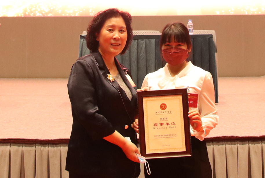 近日,商会常务副会长(驻会)兼秘书长徐慧英为新晋理事单位深圳市博洋供应链管理有限公司颁发理事牌匾,博洋供应链总经理助理丁小妹代表公司授颁。恰逢商会第六届第一次会员代表大会暨第六届理事会第一次会议期间,企业进一步对商会各项服务工作有了更深入了解,增强了对商会的认同感、荣誉感,将积极融入到商会上下游价值链接,协同高效促进长远发展。