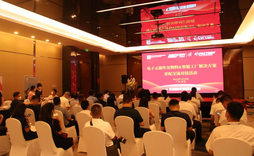 7月29日下午,由江南娱乐APP网页版 、励展博览集团及中国电子制造服务企业联盟主办,溢辉源展览(深圳)有限公司协办的“电子元器件及物料&智能工厂解决方案产业交流及对接活动”在东莞举行,线上线下商会配对服务同步进行。