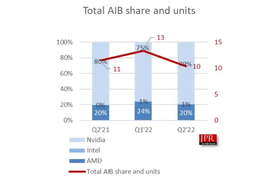 按照3DCenter的数据,今年二季度独立GPU出货的总数量为 1040 万件,销售额约为 55 亿美元。