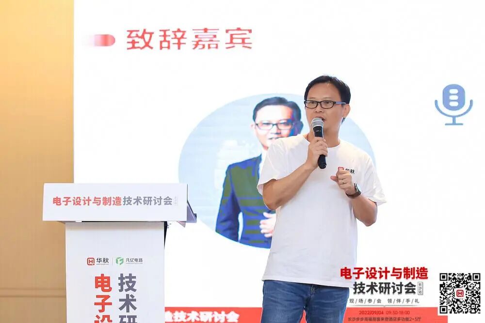 曾海银先生表示:华秋电子是一家致力于以信息化技术改善传统电子产业链服务模式的产业数智化服务平台,从电子工程师集聚的社区论坛——电子发烧友网起步,华秋基于工程师,布局了方案设计、元器件电商、PCB 制造、SMT 制造和 PCBA 制造等电子产业服务,华秋致力于服务好广大工程师,“为电子产业降本增效”是我们的使命。由此出发,特别举办了这场研讨会,希望帮助工程师,帮助进行硬件产品的团队减少错误,使生产过程更顺利,达到提效降本。