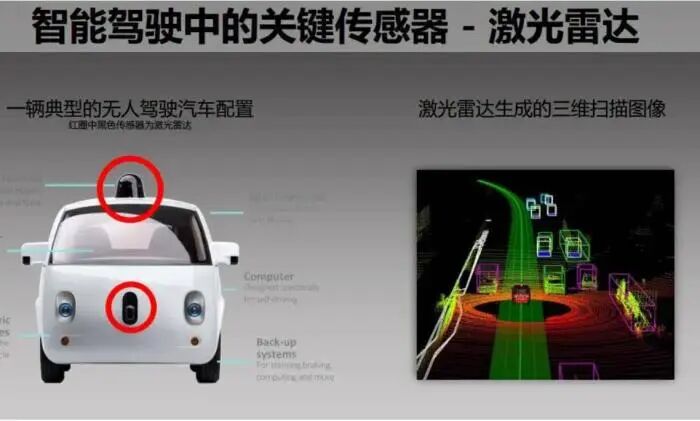 而另一派则认为摄像头不行,因为摄像头与人眼不同,摄像头采集到的图像是平面的,难以判断距离,要引入激光雷达,可以更立体的获取信息,然后再来计算,决策,最后让汽车做出反应,这是另外一种方向。