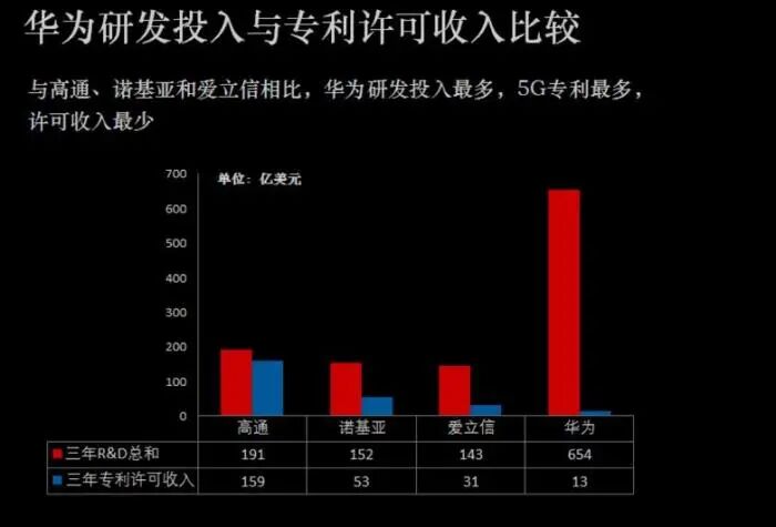 但事实上,华为对5G专利收费很低的,并且很多专利也没有对友商收费,数据显示,过去的三年,华为收取的专利费才13亿美元左右。