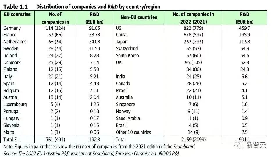 去年年底,欧盟发布了《2022欧盟工业研发投资记分牌》(The 2022 EU Industrial Research and Development Investment Scoreboard),将欧盟创新驱动型产业的表现与全球主要同行进行比较。