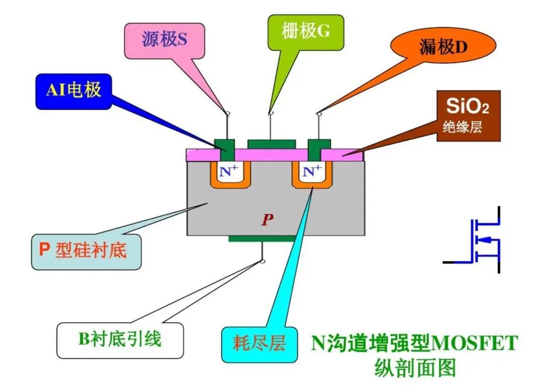 而晶体管里面又含有三个部分,源极(Source,电流入口)、漏极(Drain-电流的出口)、栅极(Gate-开关),这三个部分是晶体管的关键。