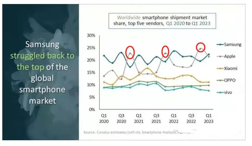 但然后在新的一年的一季度,会再被三星反超,降为第二,这样的剧本其实已经演了好几年了。