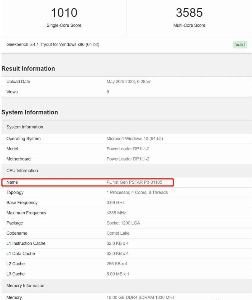 不过近日,一家外媒Wccftech“不懂事”,对宝德科技的DP1UI-2 服务器在Geekbench 5 的测试内容进行了仔细的分析后,表示,这颗暴芯(PowerStar P3-01105 处理器)其实就是英特尔i3-10105芯片的贴牌。