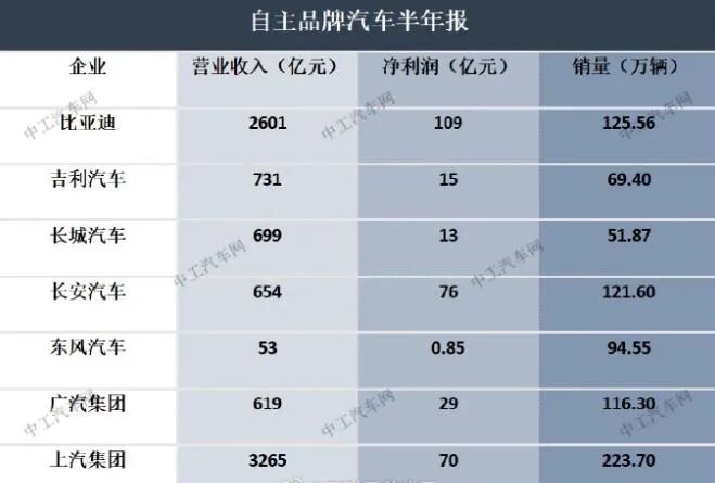 接着看看国内的自主品牌,大家可以看到比亚迪确实是很厉害。但是上海集团更厉害,销量220多万辆,营收也超过比亚迪。
