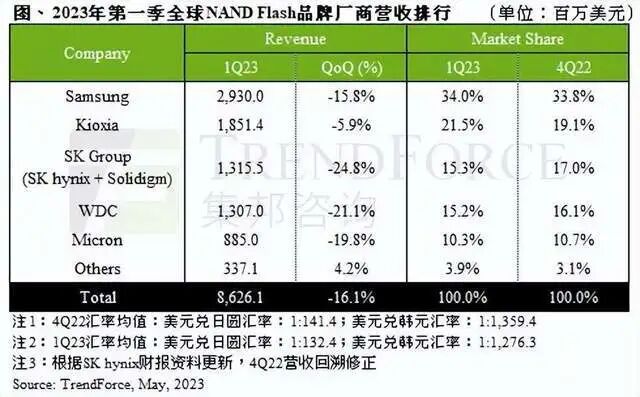理论上是没错,但事实上是长江存储的产能很小,根本就供应不了什么市场,按照2023年一季度的数据,长江存储的份额还不到4%。