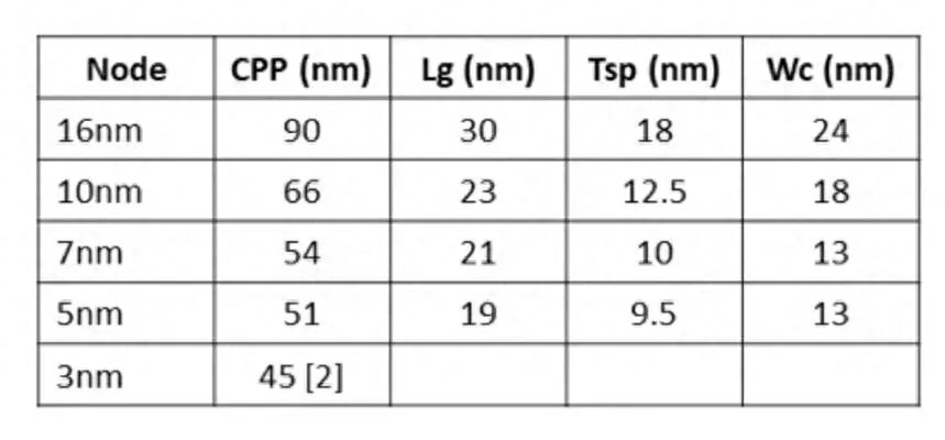 而5nm时,其CPP为51nm,实际应该是25nm左右,而3nm时,CPP值为45nm,实际应该是22nm。