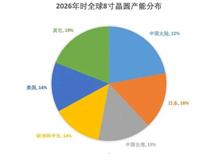 2022年时,在8寸晶圆上,中国大陆的份额为21%,也是排名全球第一的。所以到2026年时,依然排第一,没有什么奇怪的。