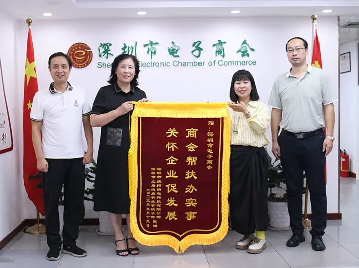 看望创会常务副会长罗滨及家人,并代表商会向罗老和夫人致以最诚挚的问候,祝二老双节快乐、身体健康、生活愉快! 15 9月20日下午,常务副会长(驻会)兼秘书长徐慧英热情接待到访秘书处的新晋副会长单位广东盈华电子材料有限公司吴茂彬总经理。 16 9月21日,商会与快手电商等在九洲电器大厦举办“数码家电行业双11招选会暨深圳消费电子直播选品会”,消费类电子品牌及商家100多位嘉宾参加。 17 9月22日上午,商会组织参加2023世界制造业大会的深圳展团部分企业走访商会会员、国家级“专精特新”小巨人——安徽翔胜科技有限公司参观交流。 18 9月22日下午,电子商会主办的电子人公益课堂第六期邀请一咻通关总经理杨小平、建设银行上步支行国际业务部总经理徐思蓉分别就团队管理和跨境金融进行主题演讲。 19 9月25日上午,商会秘书处工作人员拜访艾美特总部,受到艾美特(九江)董事长、艾美特(深圳)副董事长蔡正富热情接待。 20 9月28日上午,电子商会压电晶体专委会副主任、维拓精电科技、立盾健康科技总经理吴娟丽到访秘书处,并向常务副会长(驻会)兼秘书长徐慧英赠送“商会帮扶办实事,关怀企业促发展”字样的锦旗,对前一段时期企业在产品出口面临波折时商会给予的支持表达诚挚感谢。