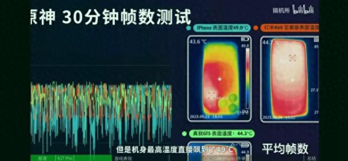 大家可以在网上搜一搜,类似的测试视频非常多,很多网友玩游戏时,iPhone 15 Pro的机身温度飙升到50摄氏度,还出现了肉眼可见的掉帧。