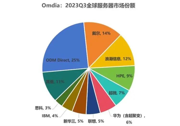 戴尔排名第一,拿下了14%的份额,然后是浪潮信息第二,份额为12%。再是HPE、超微、华为、联想、新华三、IBM、思科、其它等。