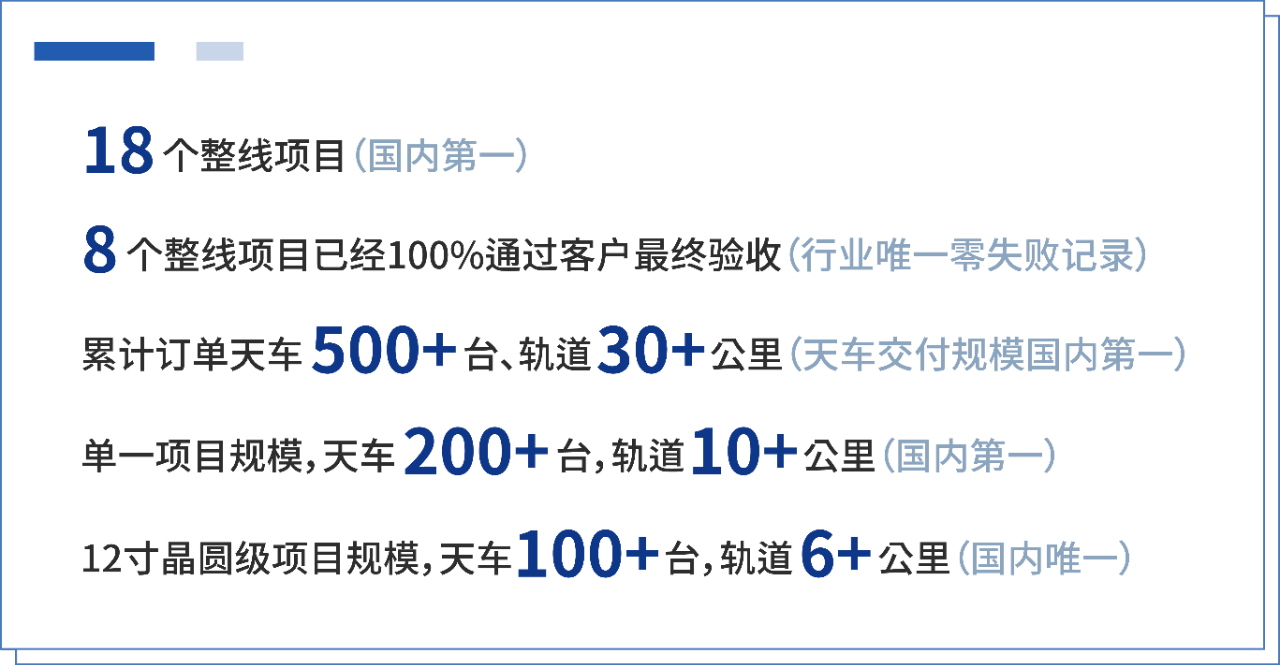 公司以封测市场作为进入晶圆市场的切入点,率先获得全球12寸先进封装头部厂商AMHS整线项目订单,并顺利通过最终验收。这一里程碑式的突破,实现了国产天车在量产线实际应用的零的突破。此后,通过持续创新,成川科技将天车首次应用于传统封测、硅基微显、高阶载板、碳化硅衬底等多个行业,开创了行业技术应用之先河。